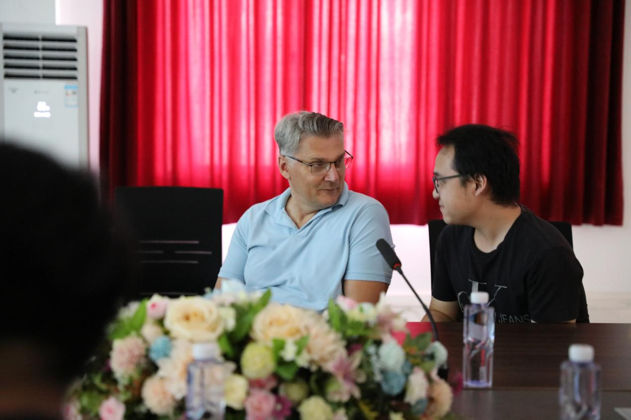 今日,匈牙利佩奇大学工业系主任、副教授博士生导师Norbert教授,以及工程与信息技术学院建筑视觉系副教授、博士生导师Erika教授,在我校董事长郑念贻先生以及动画与传媒学院杜博副院长李宗毅副院长等学院领导与老师的陪同下,对动画与传媒学院进行了深入参观与交流。
