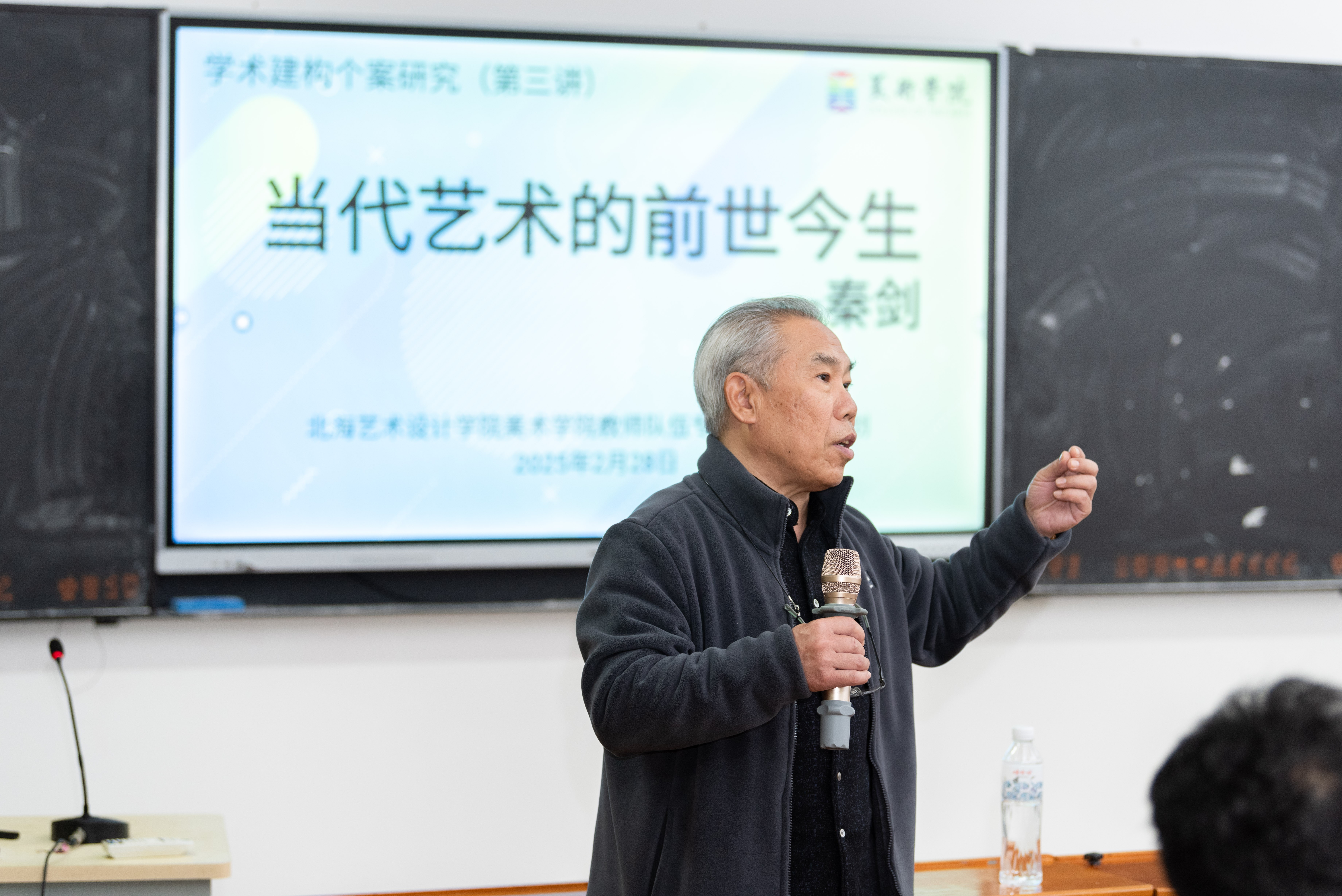 228日,美术学院在艺术楼314教室成功举办了教师队伍专业能力提升计划系列活动的第三讲。本次讲座以当代艺术的前世今生为主题,由美术学院外聘教授,原广西师范大学美术学院油画教研室主任、著名当代艺术家秦剑教授主讲。学院办公室副主任景思晔主持本次讲座,出席人员包括美术学院院长刘斌教授、执行院长龚为教授、副院长金凯婧、副院长陈建江、雕塑专业学科带头人王少军教授以及雕塑、绘画、美术学专业的专任教师。