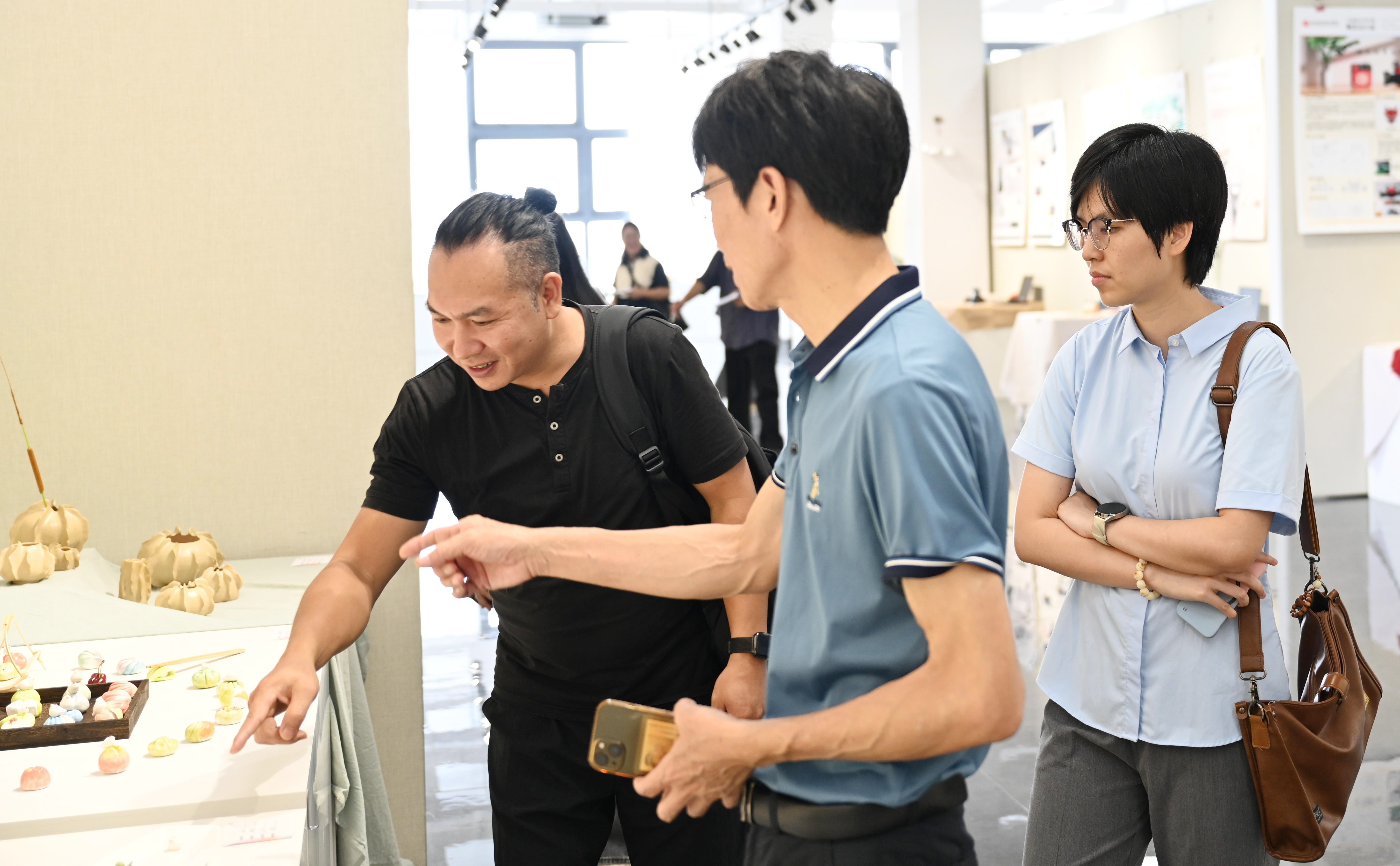 中国工艺美术大师利成世(右二)、北京工业大学贾荣建教(右一)授参观展览。