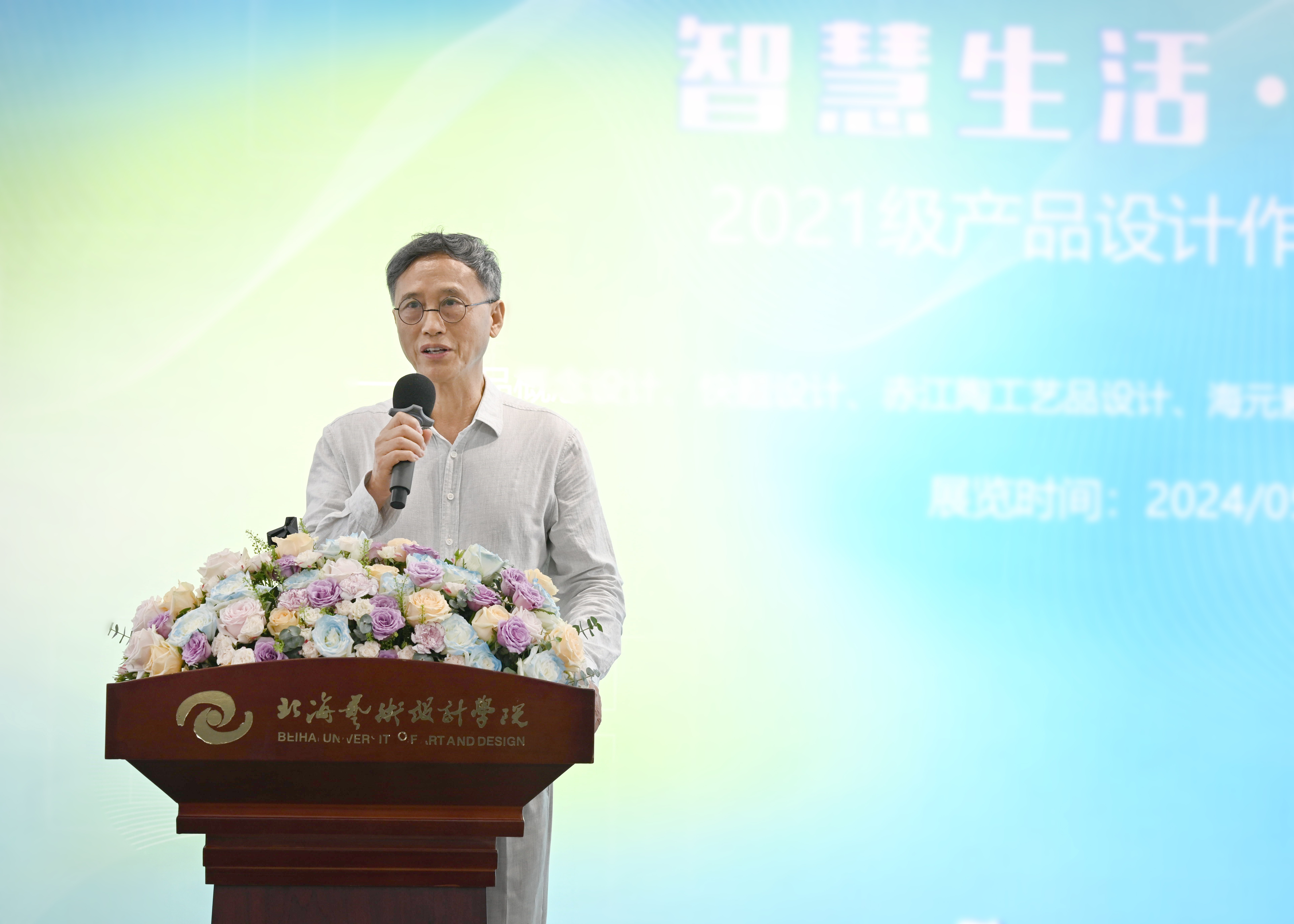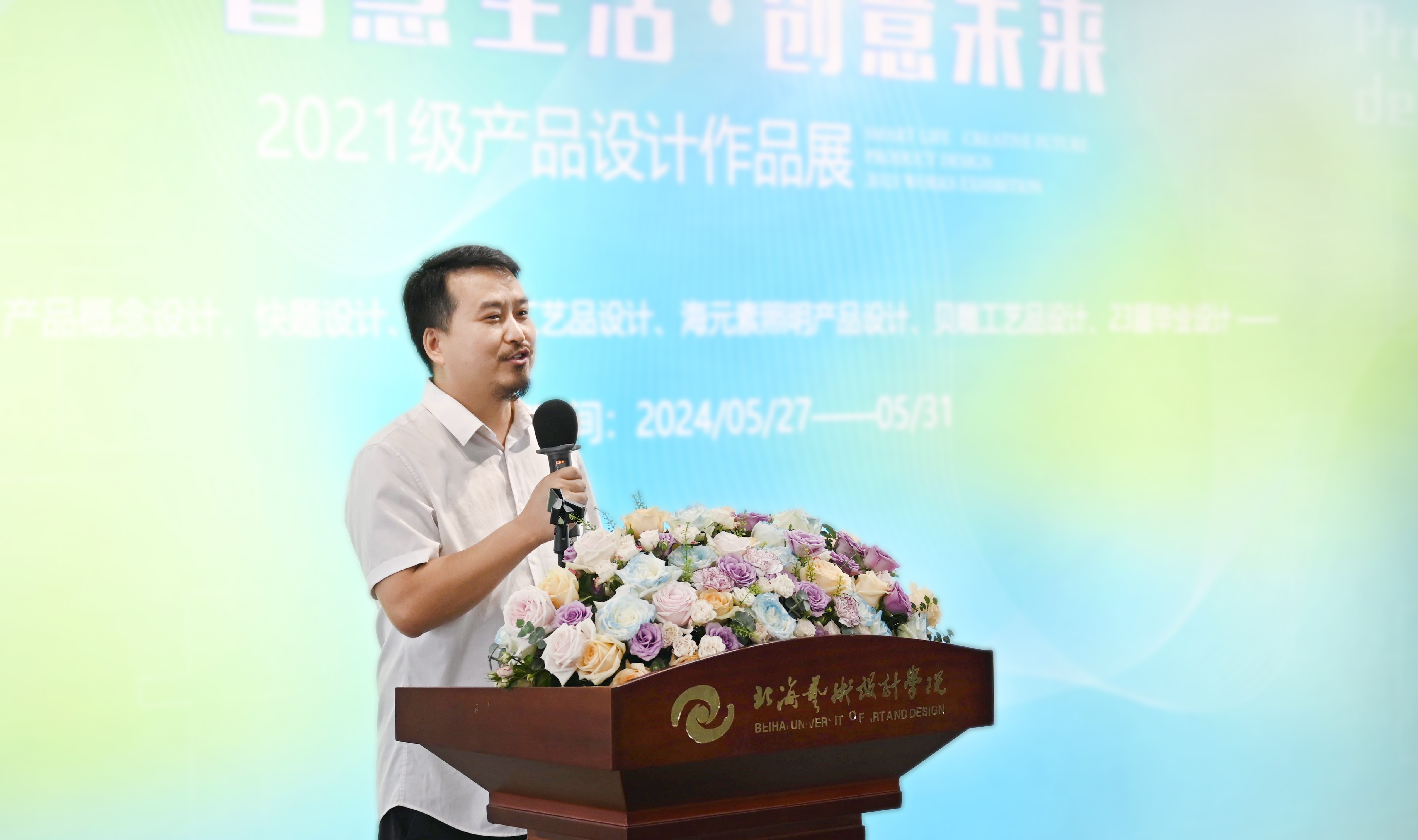 专业教师代表于易辰在发言中,首先对同学们的热爱与执着、创意与才华以及智慧与心血表示肯定,她认为本次产品设计作业展是对同学们专业学习成果的阶段性的展示,也是对同学们设计能力的深入检验。这场展览不仅是一场视觉的盛宴,更是一次心灵的洗礼。最后为即将前往北京学习的2021级产品设计专业学子送上最真挚的祝福。