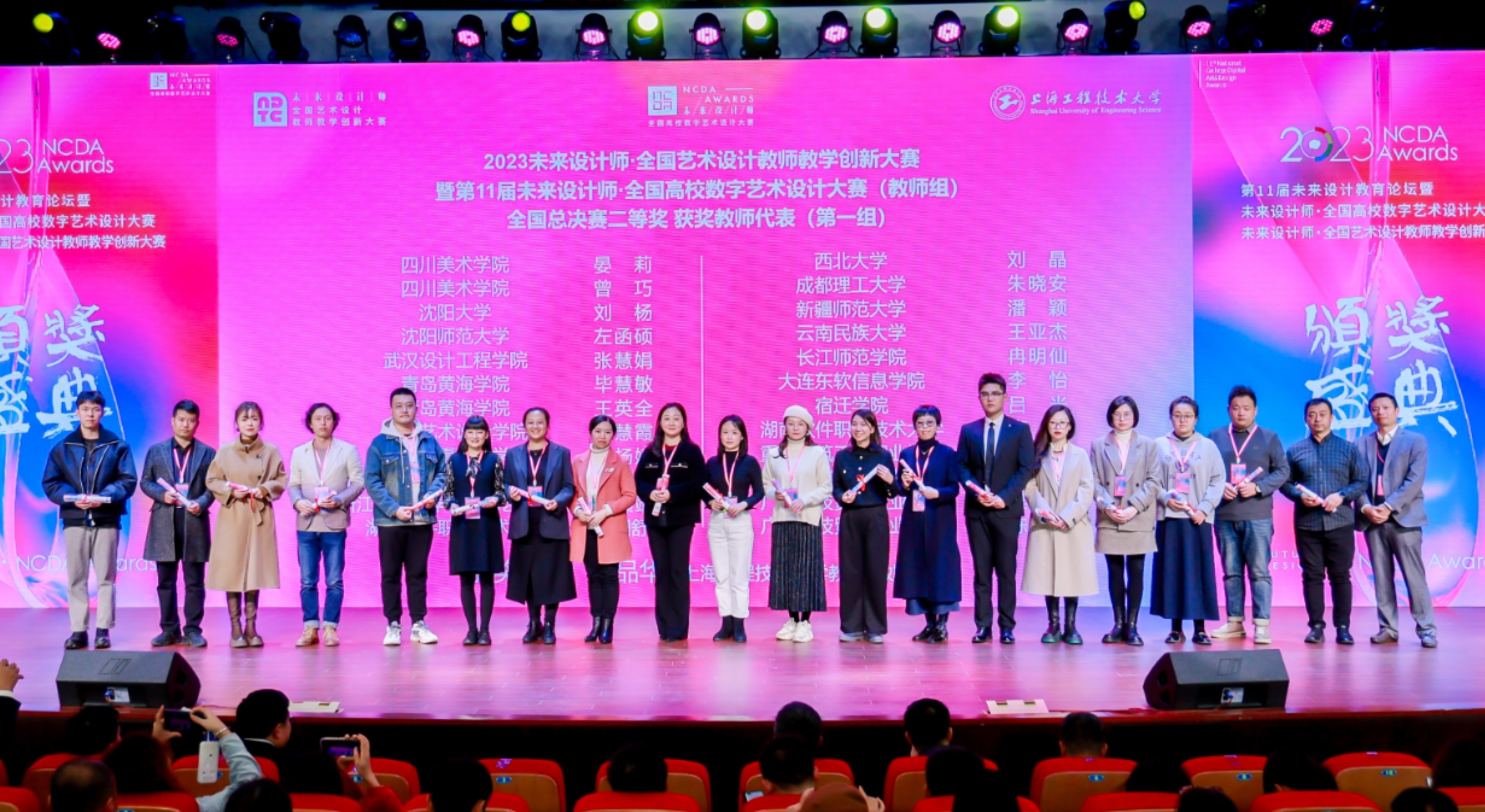 12月1日,2023第11届未来设计师·全国高校数字艺术设计大赛(NCDA)和未来设计师·全国艺术设计教师教学创新大赛(NDTC)全国总决赛颁奖典礼在上海举行。我院师生在全国总决赛中取得优异成绩!共荣获全国赛区一等奖2项、二等奖4项、三等奖5项;“优秀指导教师奖”2项;“优秀组织教师奖”1项。学校荣获“全国高校设计赋能乡村振兴专项办公室——副主任单位”和“第11届未来设计师·全国高校数字艺术设计大赛——杰出贡献奖”。