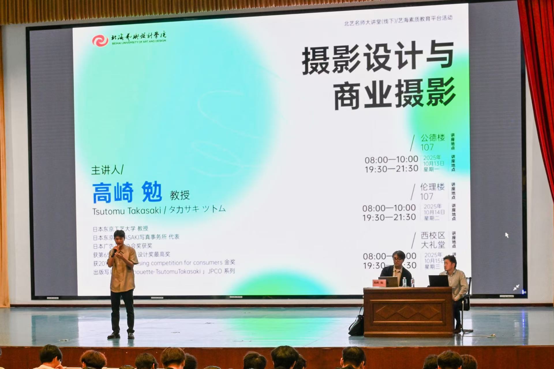 讲座中,高崎 勉教授以其职业历程与代表作为线索,系统阐述了广告摄影的创作逻辑与实践路径。他深入解析了商业摄影的关键技术,强调灯光控制对塑造作品层次、质感与氛围的核心作用,结合实例印证了“细节决定效果”的专业理念。此外,教授还分享了特殊场景的细节处理方式,强调了纸质作品集在职业发展中的重要性,并以其波浪主题艺术摄影成功转化为商业合作的案例,启发师生重视日常积累与个人风格表达,为拓展职业思路提供了有益参考。
