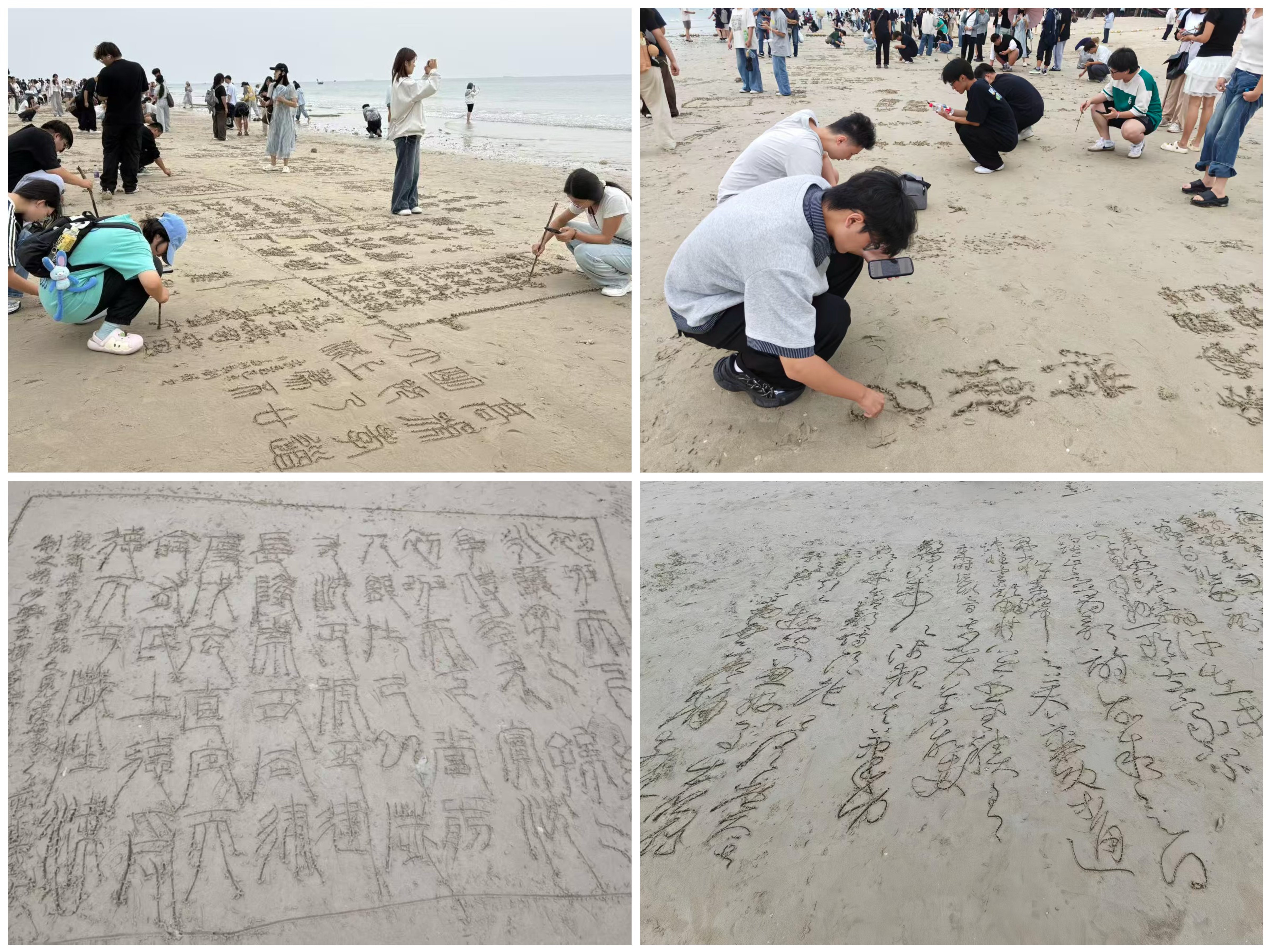 近日,书法学院于涠洲岛写生期间,面向2025级书法学专业全体学生,开展首届“沙韵书香・笔耕蓝海”沙滩书法大赛。本次活动以“打破传统书桌边界,探索书法艺术户外表达”为主线,引导学生在碧海银沙间体悟笔墨传承,于自然场景中激发创作灵感,兼具专业性与创新性。