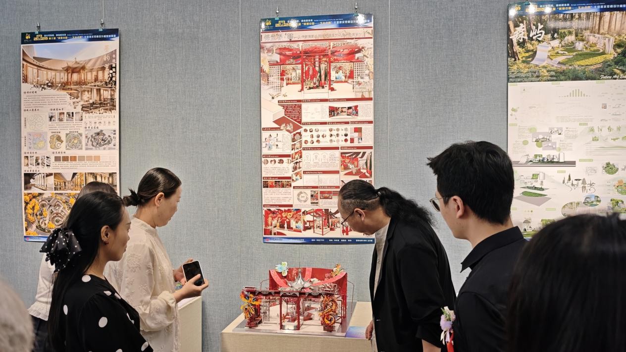 开幕式现场还同步举行了颁奖仪式。本次成果展经过严格评审,共评选出特等奖、最受关注奖、一等奖、二等奖、三等奖及优秀奖53组,同时表彰了14名优秀指导教师。其中,作品《锦堂春·囍》《森泽·泊川湿地馆》凭借鲜明的主题、精湛的制作摘得特等奖,《生灵絮语-生物多样性科普展厅设计》《醒狮踏韵·非遗寻踪》等作品分别斩获各类奖项。所有获奖作品紧扣“文化之美”核心主题,巧妙融合传统与现代设计理念,充分展现了学子们扎实的专业功底与丰富的创意思维。
