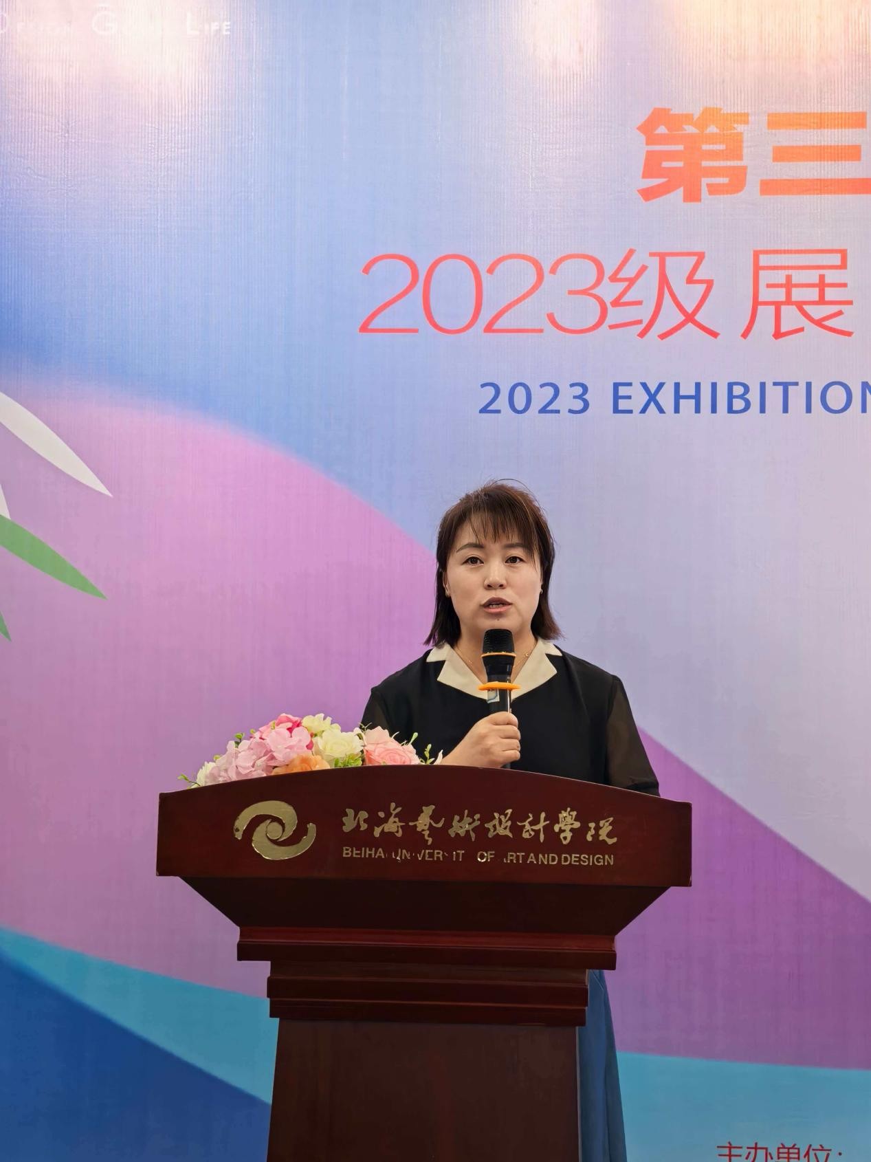 学生代表夏艺荧同学分享了自己在展示空间设计模型制作课程中的学习感悟。她表示所有参展作品都凝聚着同学们对中国传统文化的深刻理解和对艺术创新的不懈探索,希望通过本次展览,让更多人感受到展示空间设计的独特魅力,也期待各位领导、老师和同学提出宝贵意见,助力大家不断成长进步。