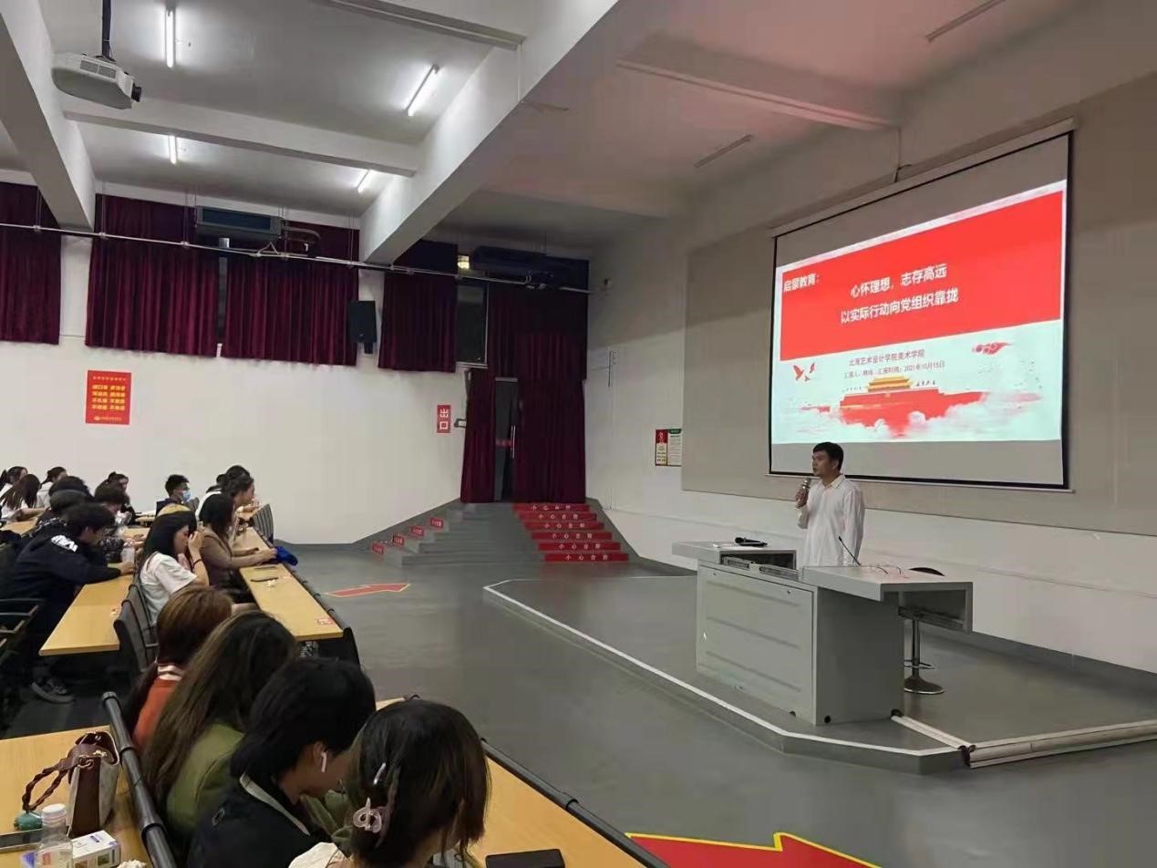 为切实做好2021级新生入学教育工作,积极引导新生自觉争做中国特色社会主义的坚定信仰者和忠实实践者,帮助新生端正入党动机。2021年10月15日,美术学院召开2021级新生入党启蒙教育主题讲座。大会开始,韩玮书记首先讲述了党的百年历程,中国共产党诞生于人民水深火热的时代,它的诞生改变了近代以后中华民族发展的方向和进程,改变了中国人民和中华民族的前途和命运。中国共产党自成立以来,团结一致,带领中国人民,浴血奋战、发愤图强,创造了新民主主义革命、社会主义革命和建设、改革开放和社会主义现代化建设、新时代中国特色社会主义的伟大成就。