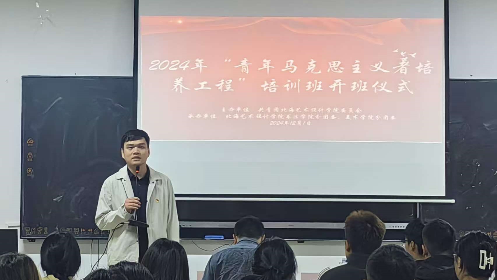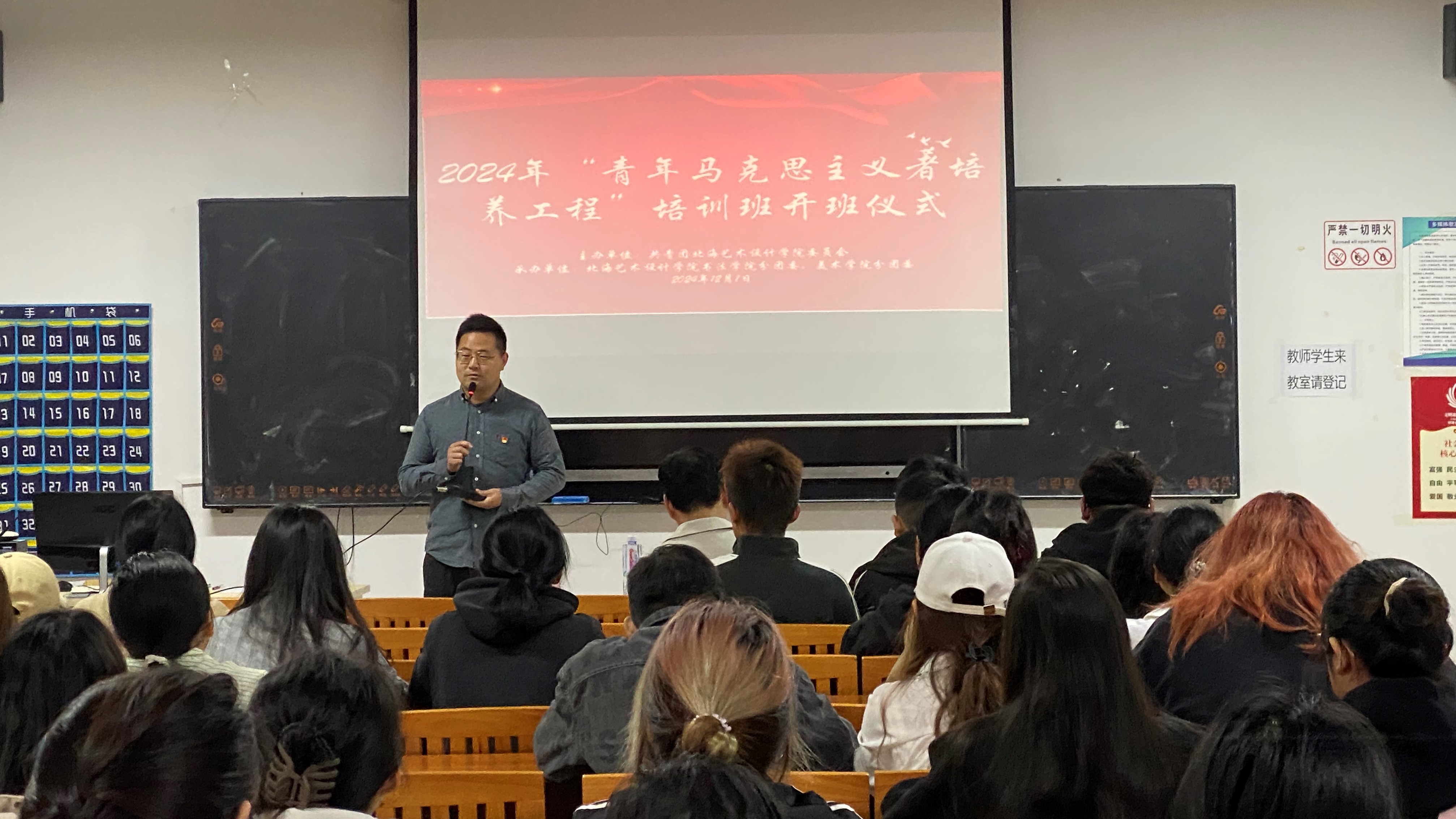 为深入贯彻习近平新时代中国特色社会主义思想,进一步加强对青年大学生的思想政治引领,使各位青马学员成长为中国特色社会主义事业奉献的合格建设者和可靠接班人2024121日上午8,由书法学院与美术学院联合举办的2024-2025学年“青年马克思主义者培养工程”培训班开班仪式在西校区艺术楼314顺利举行。