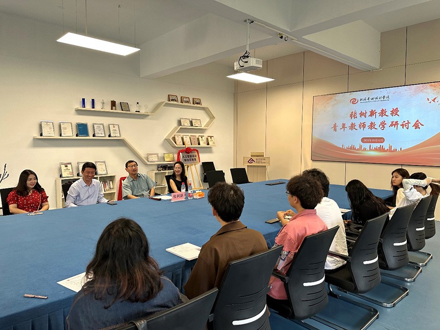 10月13日下午,“两院教授”张树新(清华大学美术学院博士生导师、副教授,北海艺术设计学院教授)与设计艺术学院的青年教师开展教学研讨座谈会,会议由设计艺术学院副院长白建强主持。