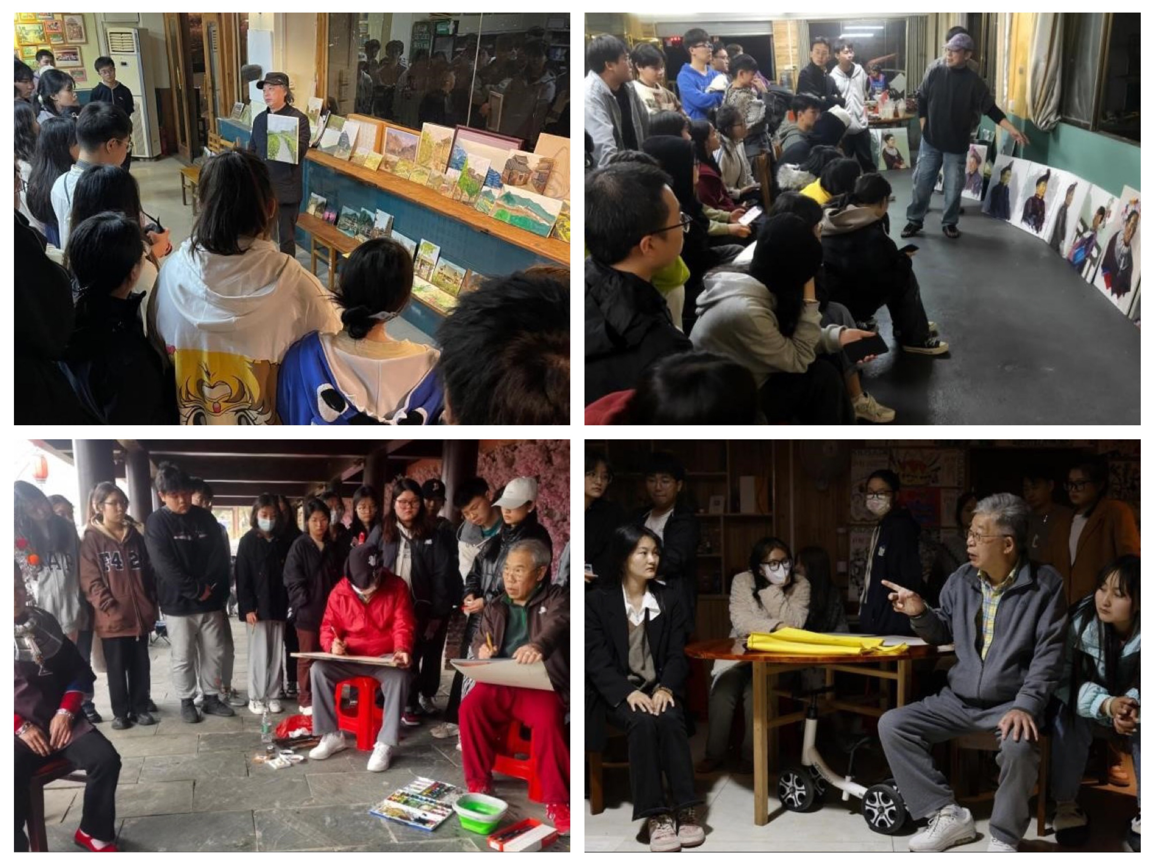 写生实践过程中,美术学院曲湘建、刘斌、王少军、崔君旺、王跃奎、龙义敏教授,美术学院副院长龚为,以及绘画专业相关教师为学生进行了现场示范指导。