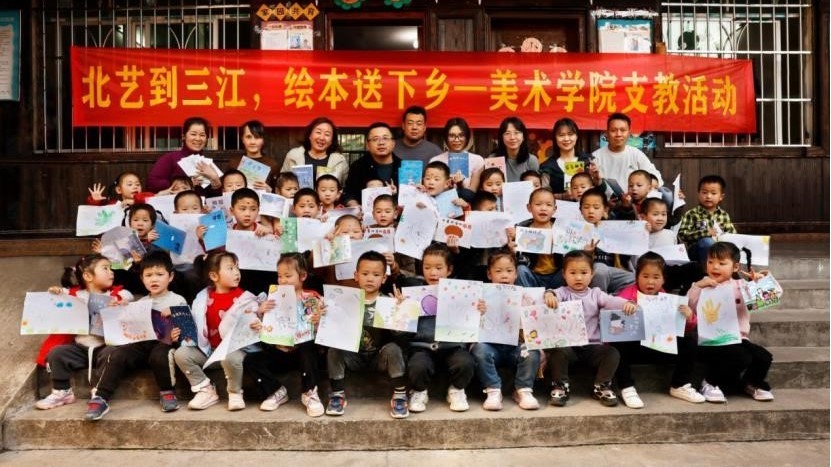 3月9日,美术学院副院长龚为、肖玺,党总支副书记鲁明阳等教师前往三江蓝精灵幼儿园赠送绘本读物。学院师生在写生前,充分了解了地方幼儿绘画教育资源匮乏的问题,并精心挑选出优秀学生绘本作业制作成绘画图书进行捐赠,美术学院还安排学生为大班的孩子们讲授了一堂绘画课程。