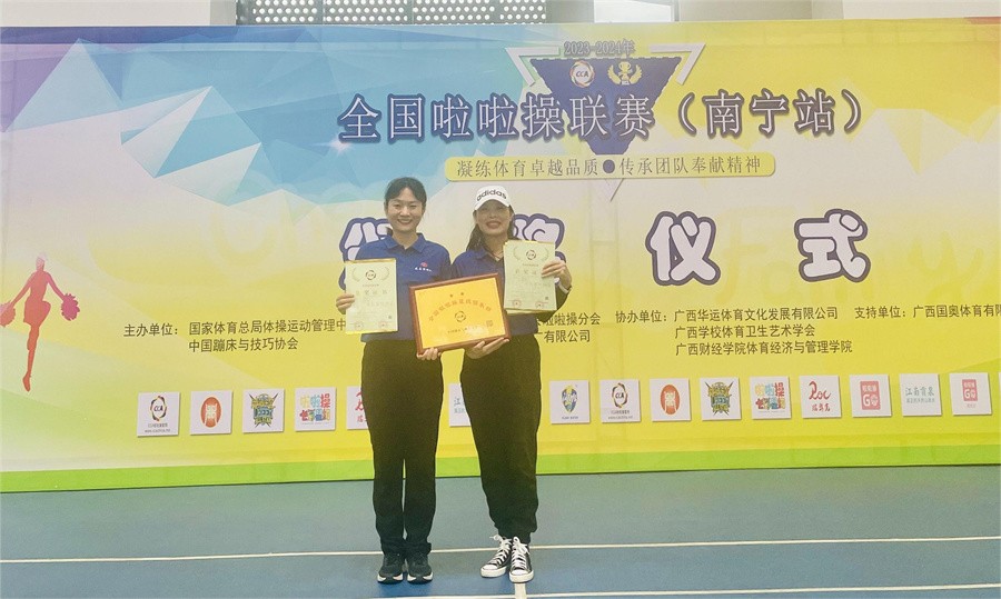 12月1日-3日,由国家体育总局体操运动管理中心、中国蹦床与技巧协会主办的“2023-2024年全国啦啦操联赛(南宁站)”在广西建设职业技术学院落下帷幕。我校“战马”啦啦操队在数百支参赛队伍中脱颖而出,荣获公开青年乙组集体爵士自选动作、集体自由舞蹈——徒手组、集体自由舞蹈——道具组3项集体冠军,并在双人花球自选动作、双人爵士自选动作中取得亚军、季军、第五名和第六名各1项,学校获批“全国啦啦操星级俱乐部”荣誉称号。