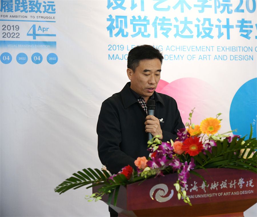 校党委副书记韦静月宣布设计艺术学院2019级视觉传达专业汇报展正式开幕。