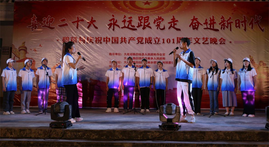 校团委在河池市大化瑶族自治县碧草小学开展暑期“三下乡”暨 “喜迎二十大,永远跟党走,奋进新时代” 文艺晚会庆祝中国共产党成立101周年。