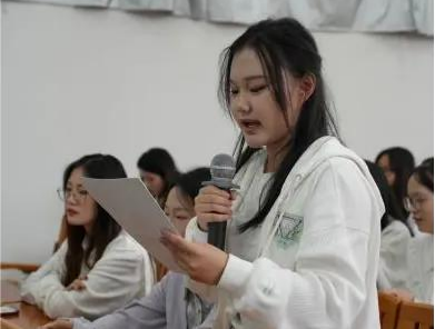 来自秘书部的庄飞扬与宣传部的陈佳艺作为新生助理代表,在第三环节中分享了她们加入团队后的成长与体会。她们讲述了一学期以来的学习收获、工作感悟以及与同仁协作的温馨点滴。真挚的发言引起了在场许多新助理的共鸣,展现了学工助理代代接力、持续焕发的活力与生机。