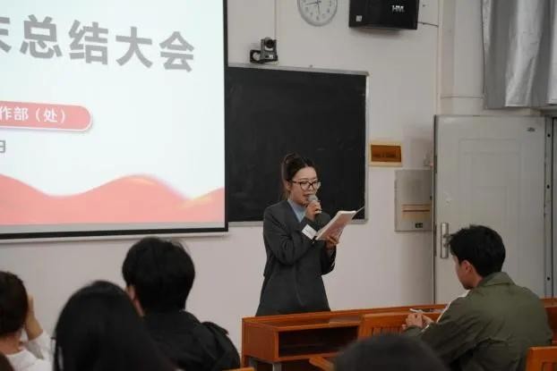 会议伊始,各部门负责人依次上台,就本学期工作进行了系统梳理与深入总结。汇报重点围绕学风建设、部门职能履行情况等内容展开,既展示了阶段性的工作成果,也秉持务实态度,客观剖析了当前存在的不足与改进空间。这些反思精准切实,为下一阶段工作的优化提升奠定了扎实基础。