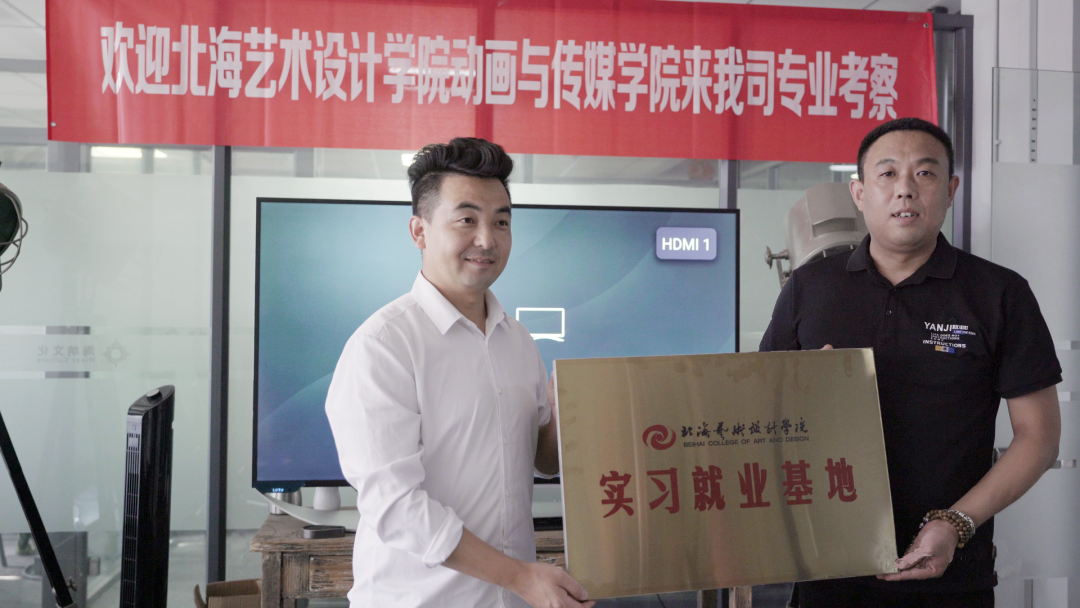 8月31日下午,动画与传媒学院2019级数字媒体艺术专业学生在我校副校长邱杰、动画与传媒学院党总支书记孙永辉、北京实践基地办公室主任陈晨,专业教师王宁宁、肖明歌的带领下,前往北京海纳三川文化传媒有限公司进行专业考察学习。海纳三川文化传媒有限公司副总裁邢江峰、校企合作总监苗青热情接待我校考察团。双方开展交流座谈并举行了“双创综合实践基地”授牌仪式。