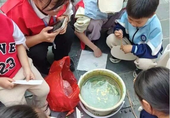 活动设植物拓染手工体验区、漆扇创作手工体验区及社区志愿服务工作组,志愿者们分工协作,保障活动高效推进。两大体验区开放后迅速成为居民参与热点,志愿者贴心提供创作材料,助力参与者完成作品。服装学院团总支书记陈琛还现场开展植物拓染技艺教学,带领大家感受传统手工艺的文化魅力。不少亲子家庭积极参与,在创作中收获乐趣与成长。